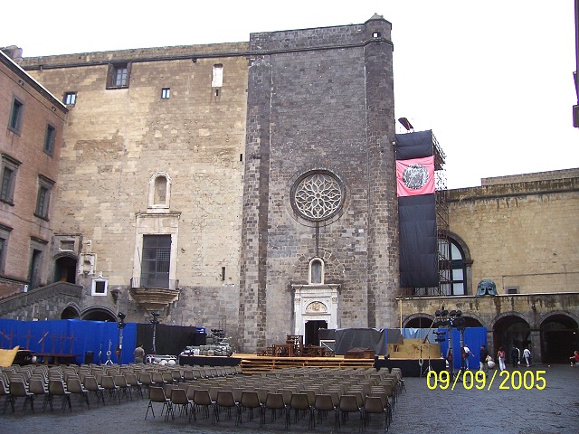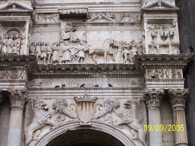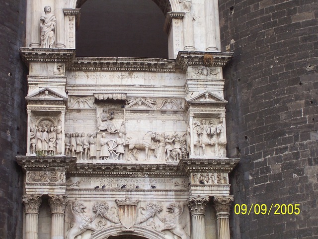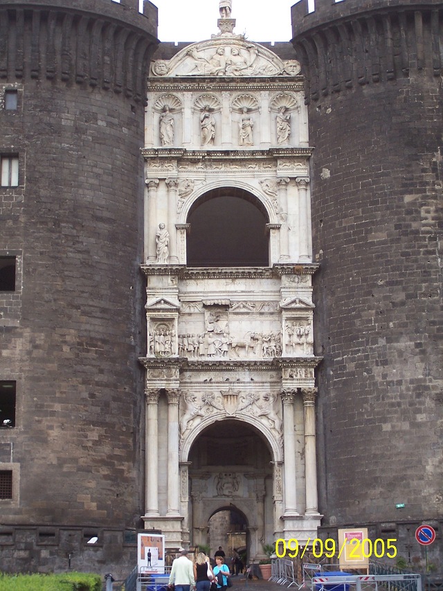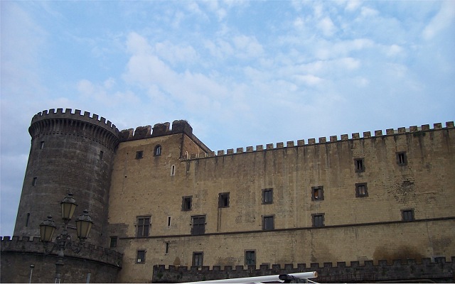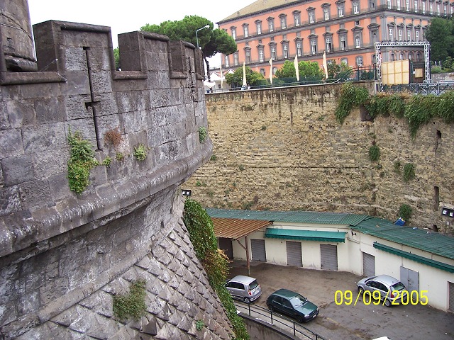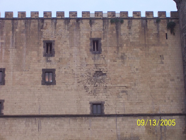 Wall of the Castel Nuovo Showing Cannonball Battle Scar
