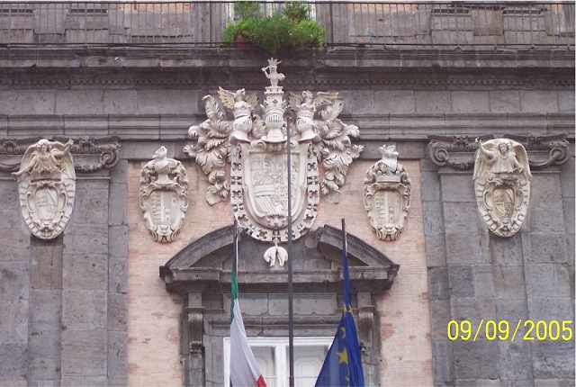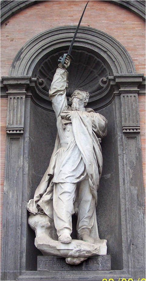 del Palazzo Reale Below, see the statues that form part of the façade of the building. The statues depict the various individuals collectively known as "I Re di Napoli" or "the Kings of Naples" by the locals. They are known to us as the kings of the Kingdom of the Two Sicilies and/or the Kingdom of Naples known as "Il Regno di Napoli." They ruled all of Southern Italy starting South of the Papal States to Sicily. Vittorio Emanuele, however, was the Savoy King of Italy from 1861-1878. Except for Gioacchino Murat, the kings are from Norman, Hohenstaufen, Anjevin French, Bourbon Spanish, Hapsburg and Savoyan royal houses. I Re di Napoli - The Kings of Naples and Sicily