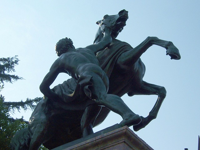 Statue on the left.