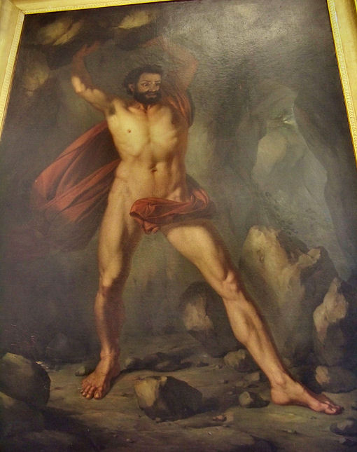 Raah! Man hurling a stone.