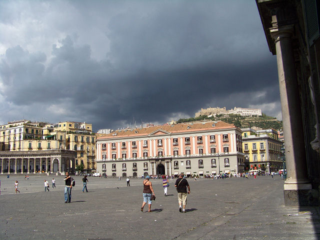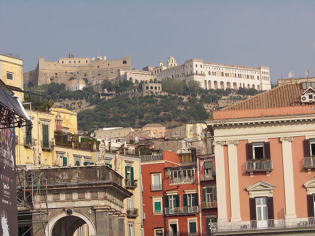 A view of St. Elmo and San Martino fortresses from Piazza Plebiscito
